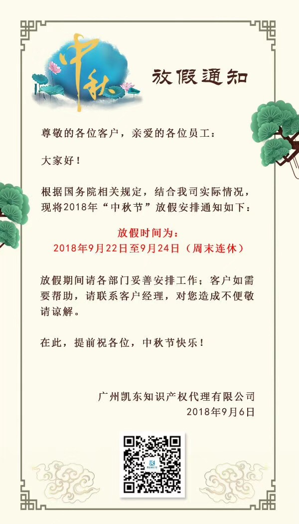 >>新聞資訊>>2018年凱東公司“中秋節”放假安排通知