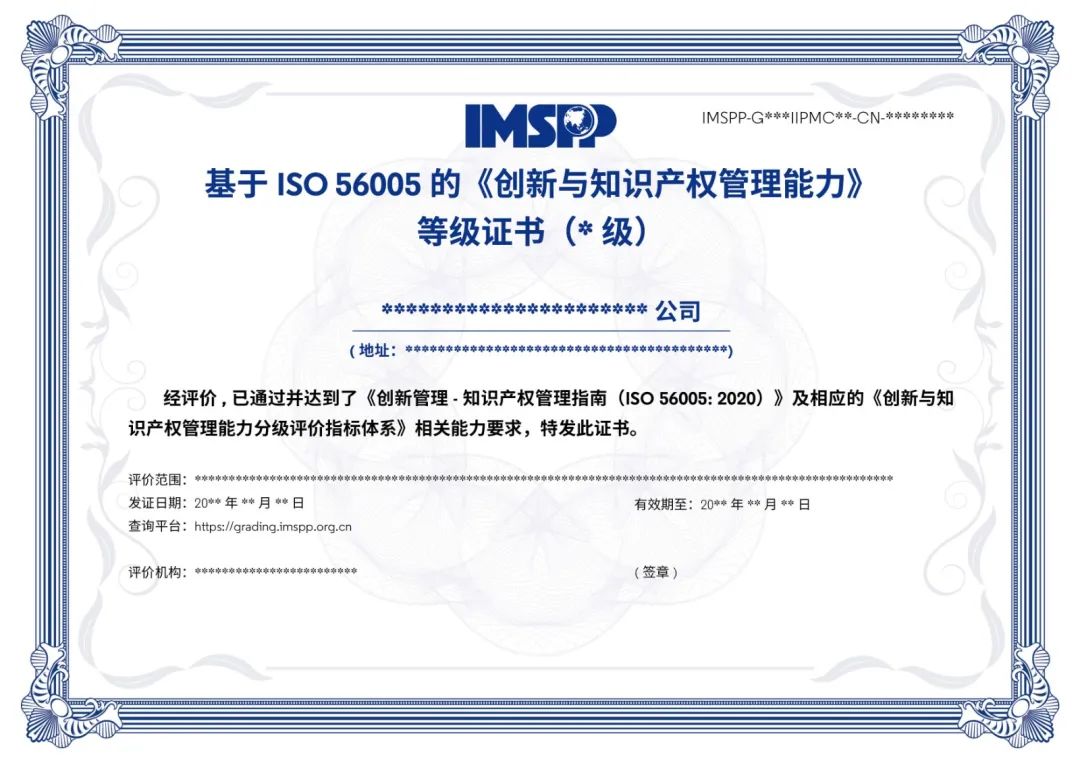 ○“ISO56005”全稱為創新與知識產權管理能力分級評價;創新過程可以分為5個階段,分別是:識別機會、創建概念、驗證概念、開發方案和部署方案。分級評價分為五個等級,自低向高分別為一級(初始級)、二級(過程級)、三級(項目級)、四級(系統級)和五級(生態級)