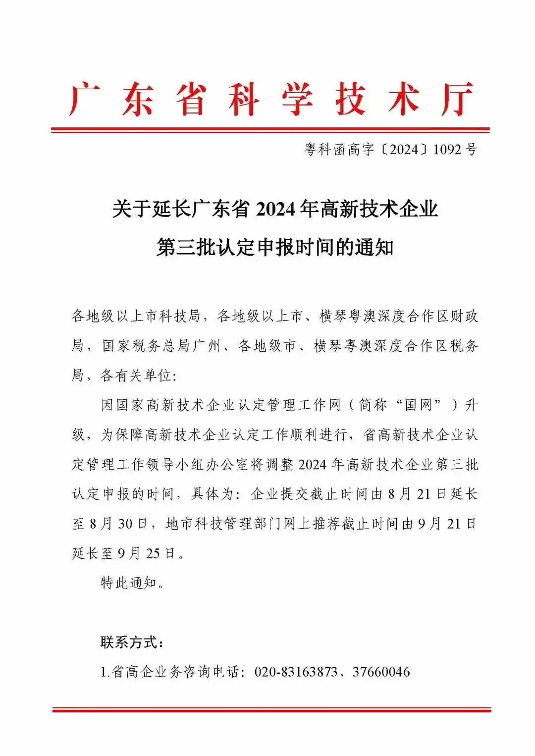 廣東省高新技術企業第三批從8月21日延長至8月30日,想要申報高新的企業還有10天時間準備資料填報!據了解現場核查時間不一定會推遲,可能會先核查已填報的企業,反正填報完提前備好材料就對了
