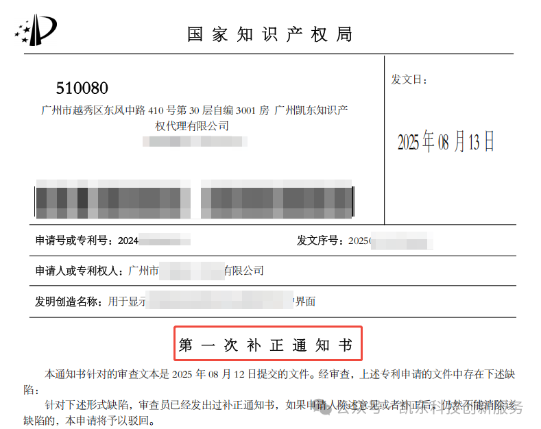 2.被動補(bǔ)正:審查員在初審階段發(fā)現(xiàn)問題,通過《補(bǔ)正通知書》要求限期修正(占絕大多數(shù))。